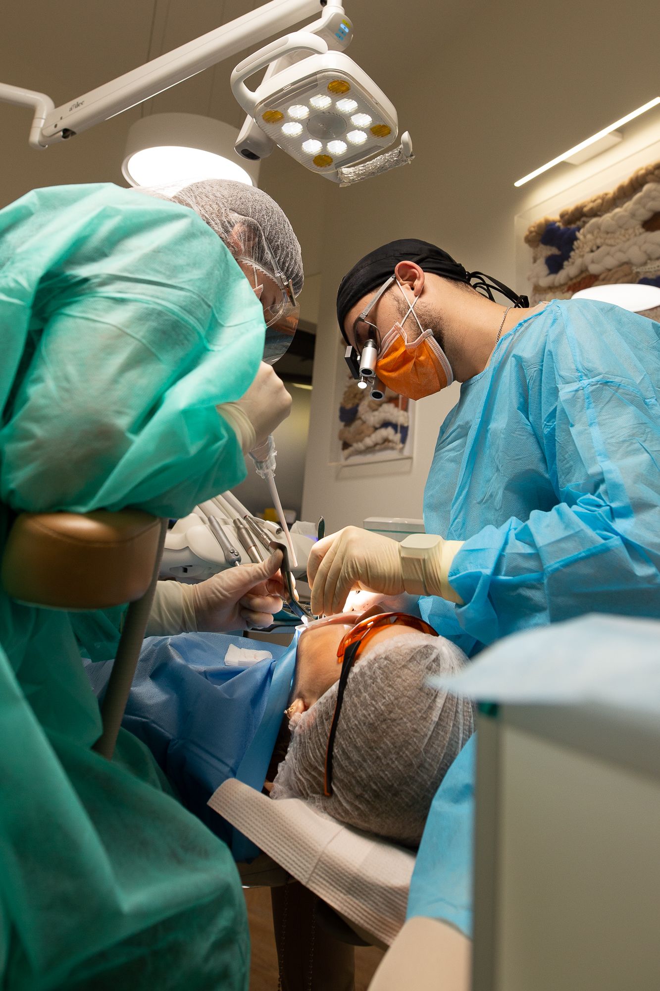 Mówimy w trzech językach, a średnie doświadczenie naszych lekarzy wynosi 18 lat. Dzięki nowoczesnemu wyposażeniu oraz wysokim kwalifikacjom oferujemy szeroki zakres usług, w tym chirurgię stomatologiczną, pomagając pacjentom poprawić komfort życia i odmienić ich uśmiechy na lepsze.